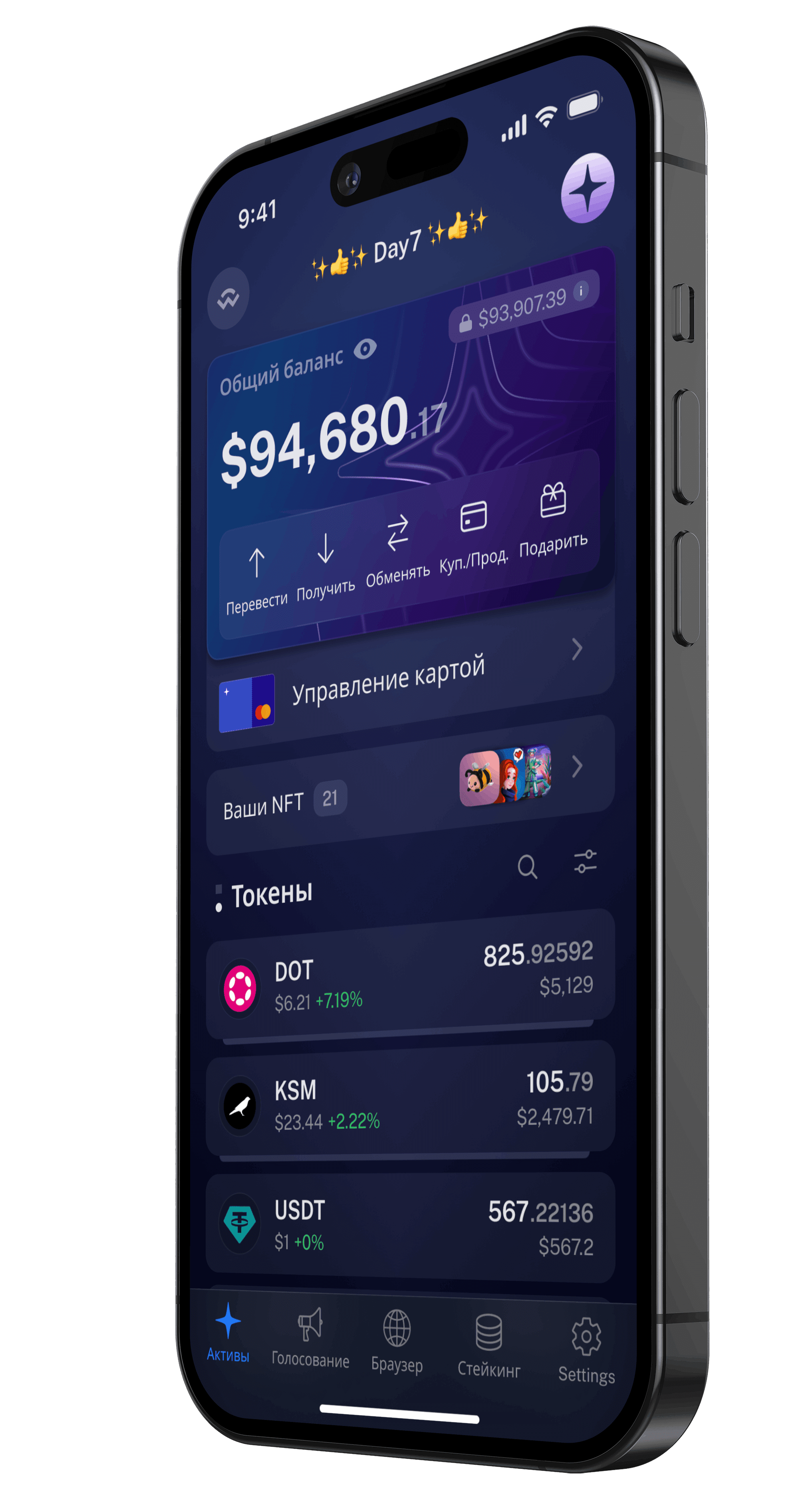 Nova Wallet — это кошелёк для сети Polkadot, поддерживающий более 100 сетей, более 410 кросс-чейн переводов и удобный стейкинг Polkadot. Он поддерживает с DApp-приложения через WalletConnect, позволяет участвовать в голосованиях по управлению и добавлять кошельки в режиме только для просмотра. Защитите свои активы с помощью аппаратных кошельков и наслаждайтесь встроенными обменами токенов. А с дебетовой картой Polkadot вы теперь можете тратить DOT где угодно.